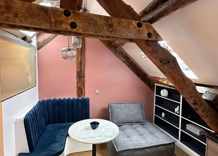 The 17 m^2 apartment offers a full kitchen with a microwave oven and a fridge, along with coffee/tea making facilities. Mairie bus stop is just 350 metres from Nid D'Amour Sous Les Toits !. The opportunity for horseback riding, bowling, and mini golf will add value to the guests' experience.